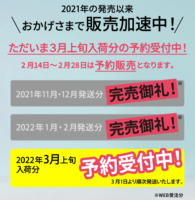 ネット購入の場合、2021年11月からずっと完売しているので現在は予約販売のみになっているスミズミキラリ。